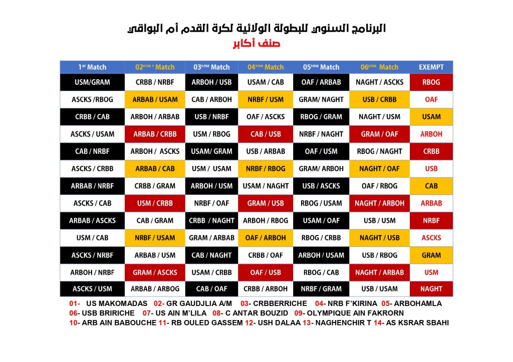 الرئيسية/ACCUEIL/برنامج البطولة الولائية لكرة القدم صنف أكابر برنامج البطولة الولائية لكرة القدم صنف أكابر