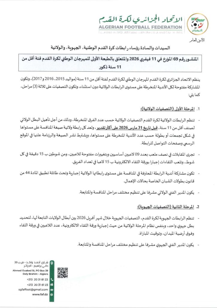 الرئيسية/ACCUEIL/المنشور رقم 69 المؤرخ في 11 فيفري 2026 المنشور رقم 69 المؤرخ في 11 فيفري 2026 تحميل المنشورإضغط هنا المنشور رقم 69 المؤرخ في 11 فيفري 2026تنزيل