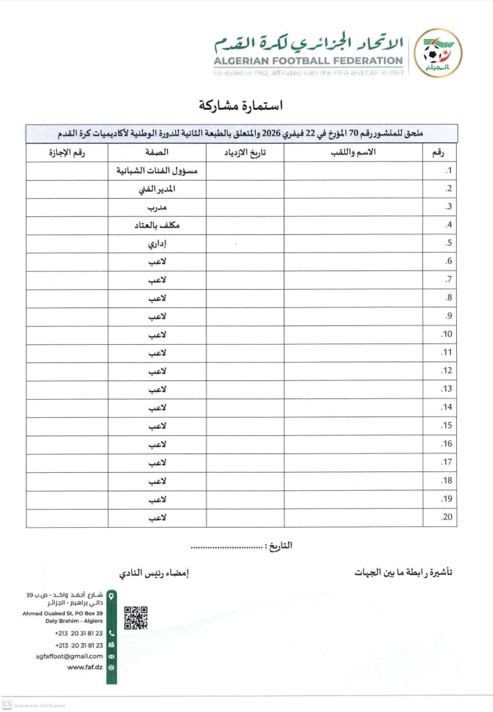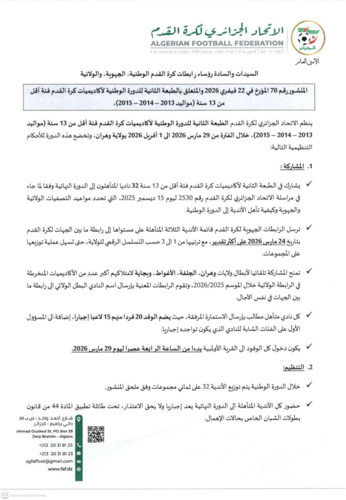 الرئيسية/ACCUEIL/المنشور رقم 70 المؤرخ في 22 فيفري 2026 الطبعة الثانية للدورة الوطنية لأكاديميات كرة القدم فئة أقل من 13 سنة ( مواليد 2013-2014-2015) المنشور رقم 70 المؤرخ في 22 فيفري 2026 الطبعة الثانية للدورة الوطنية لأكاديميات كرة القدم فئة أقل من 13 سنة ( مواليد 2013-2014-2015) تحميل المنشوراضغط هنا المنشور رقم 70 المؤرخ في 22 فيفري 2026(1)تنزيل