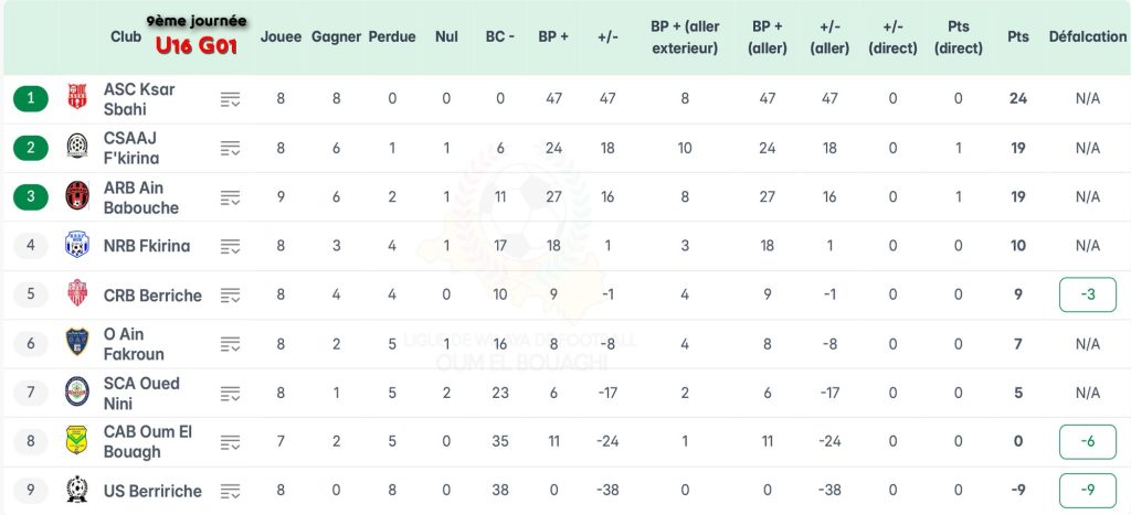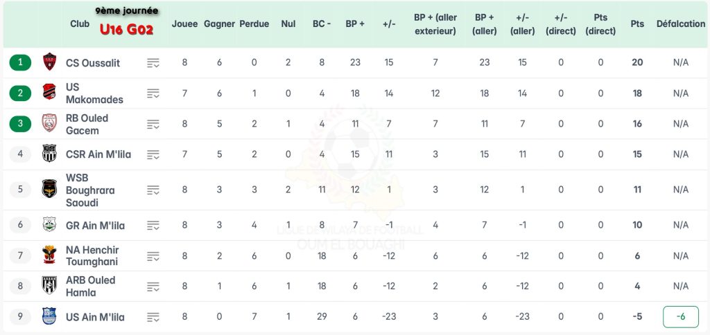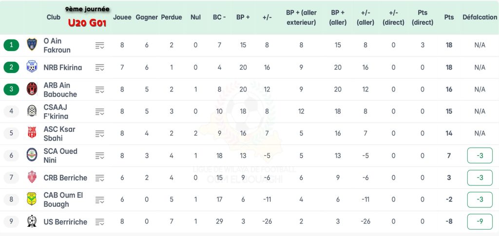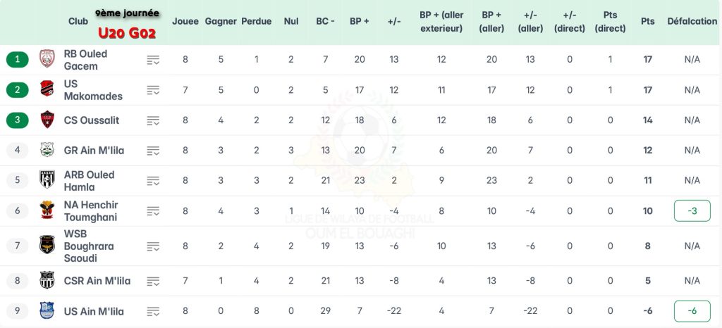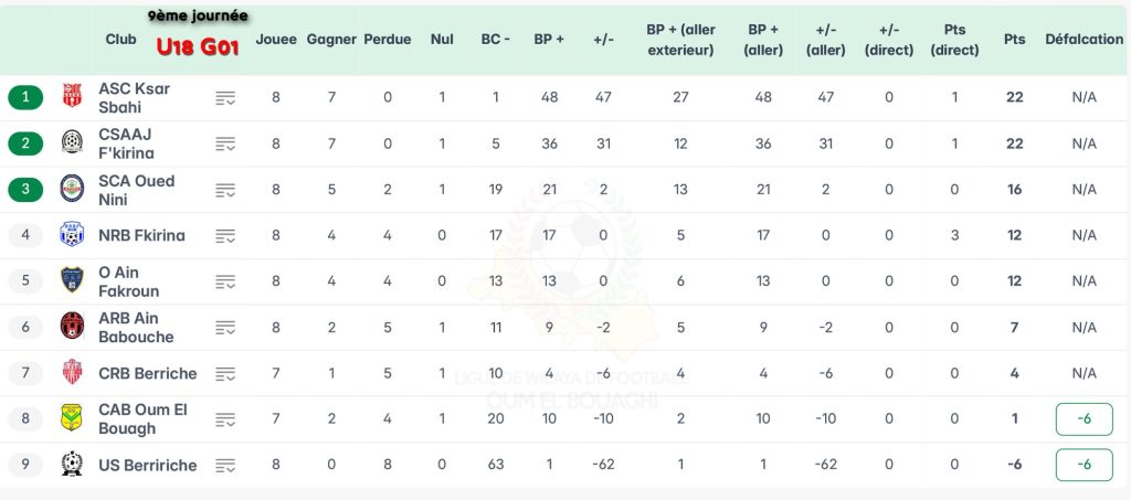 الرئيسية/ACCUEIL/تصحيح / ترتيب الجولة 09 شبان بعد تطبيق العقوبات تصحيح / ترتيب الجولة 09 شبان بعد تطبيق العقوبات