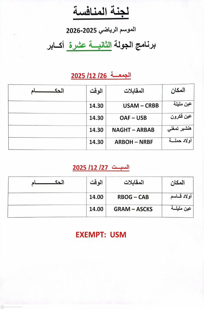 تعديل برنامج الجولة 12 أكابر