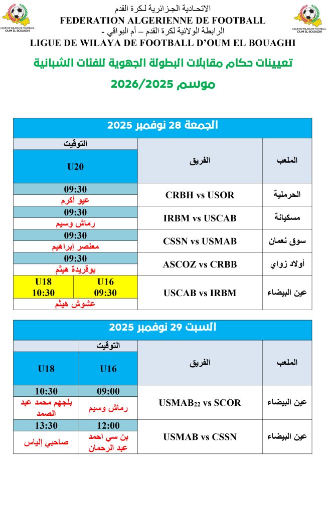 تصحيح / تعيينات حكام البطولة الجهوية شبان