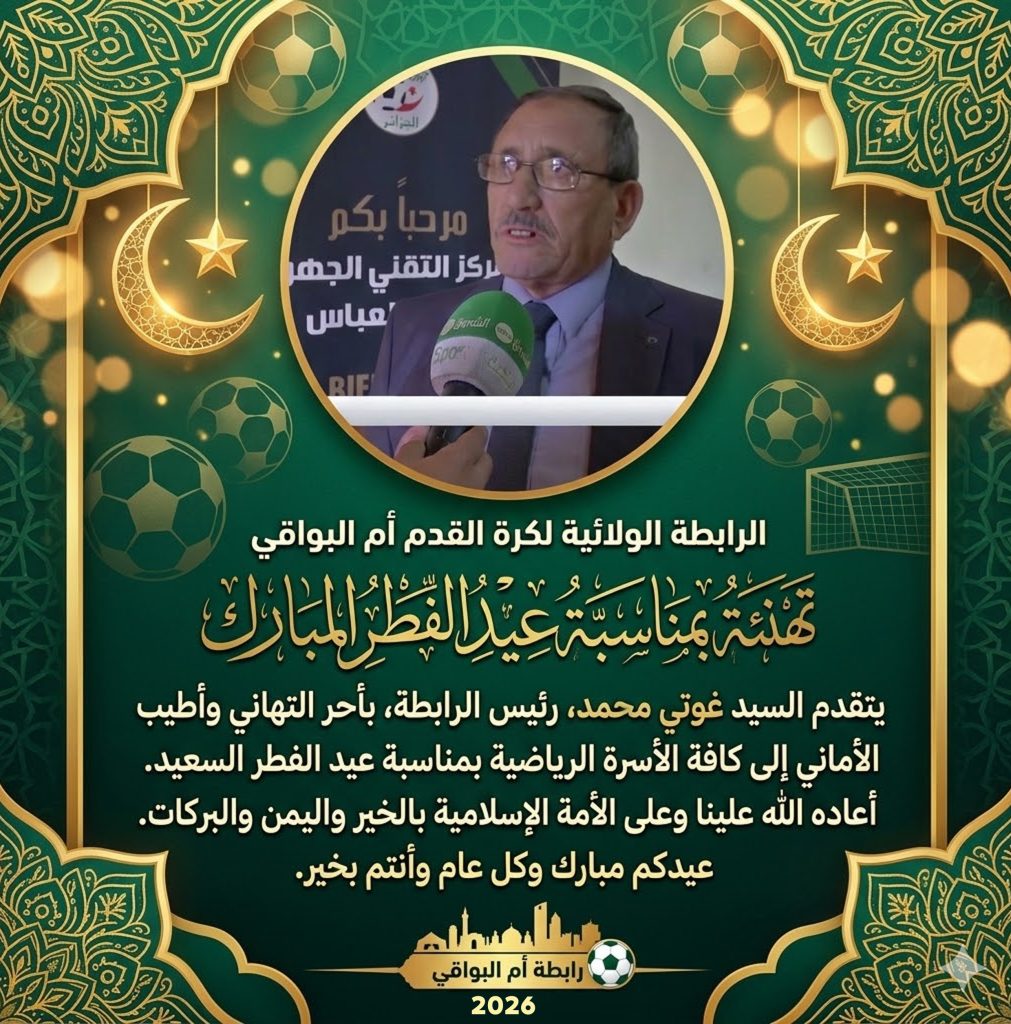 الرئيسية/ACCUEIL/تهنئة السيد رئيس الرابطة بمناسبة عيد الفطر المبارك تهنئة السيد رئيس الرابطة بمناسبة عيد الفطر المبارك