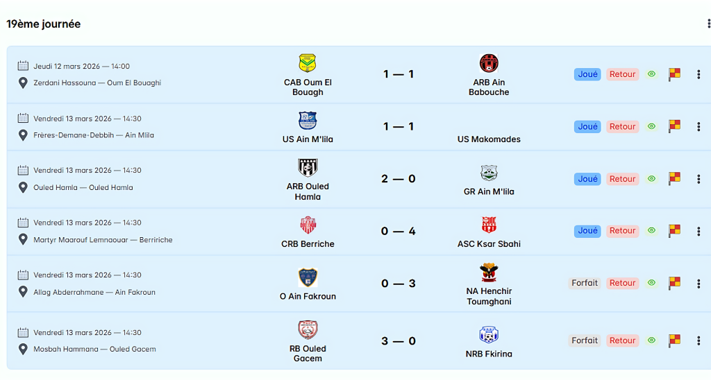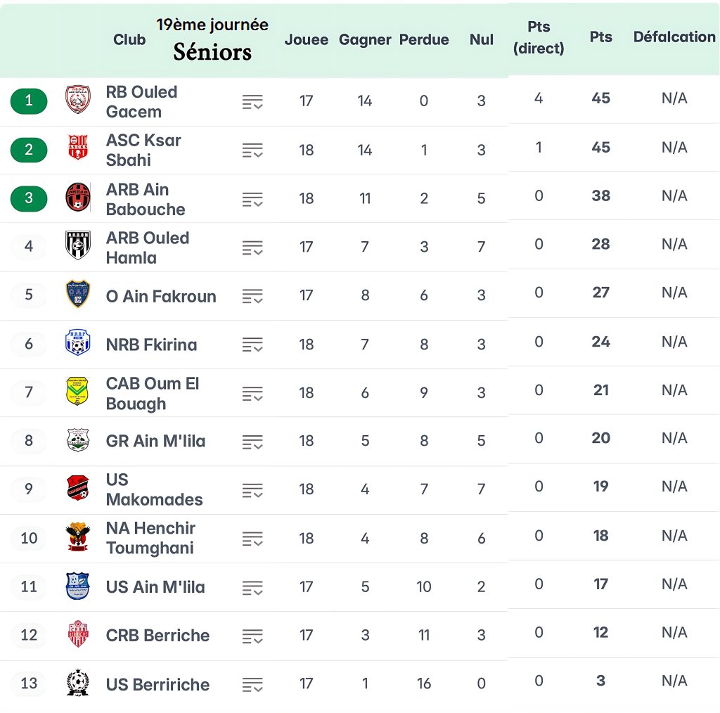 نتائج وترتيب الجولة 19 صنف أكابر